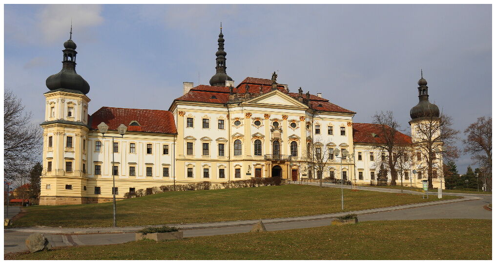 TENTO KOMPLEX BAROKNÍ ARCHITEKTURY A ZAHRAD BYL ZBUDOVÁN V PRŮBĚHU 17. A 18. STOLETÍ DLE KONCEPCE GIOVANNI PIETRA TENCALLY DOMENICA MARTINELLIHO A TO V MÍSTECH STARŠÍHO KLÁŠTERA, ZALOŽENÉHO JIŽ V ROCE 1078. TEHDY PŘICHÁZÍ DO KLÁŠTERA PRVNÍ MNIŠSKÝ ŘÁD, KTERÝM JSOU PRAŽŠTÍ BENEDIKTINI. TI JSOU VŠAK VE ČTYŘICÁTÝCH LETECH 12. STOLETÍ VYHNÁNI A DO HRADISKA PŘICHÁZEJÍ PREMONSTRÁTI.