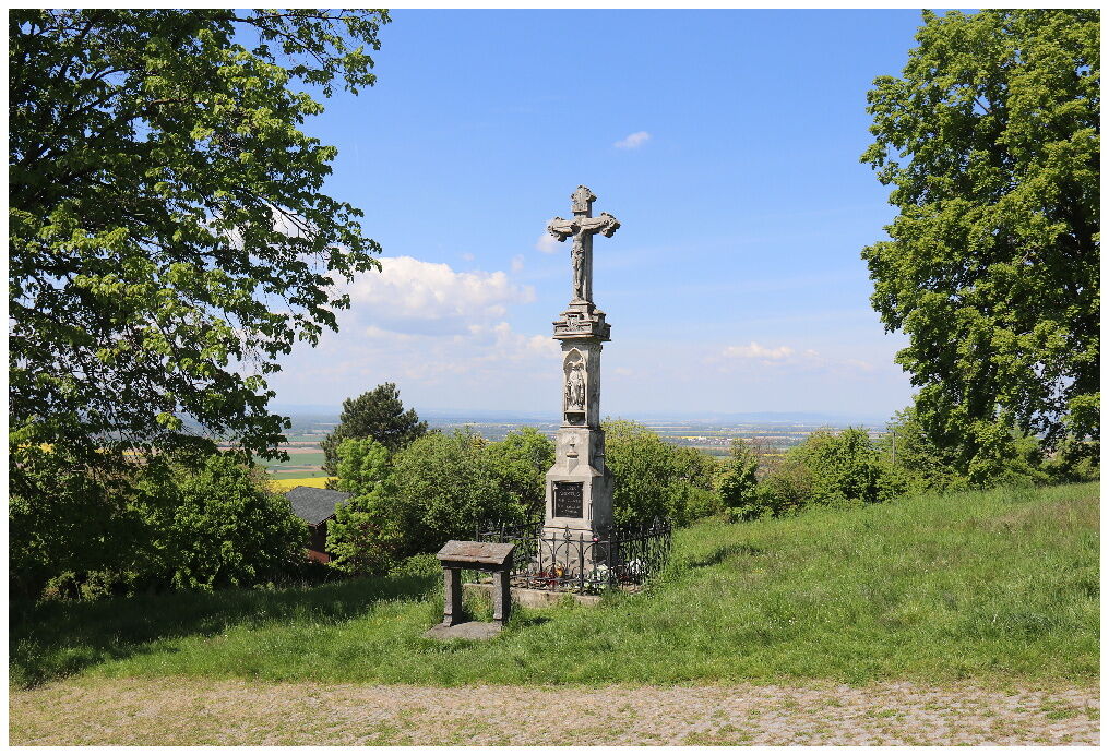 PŘICHÁZÍME NA VRCHOL POUTNÍ CESTY, NA NÁVRŠÍ JANA PAVLA II., PŘED NÁMI SE OTEVÍRÁ ŠIROKÝ POHLED NA BAZILIKU. ZDE STOJÍ NEJMLADŠÍ Z DROBNÝCH PAMÁTEK NA POUTNÍ CESTU. JE TO KŘÍŽ Z ROKU 1900; ZAJÍMAVOSTÍ JE, ŽE DONÁTORY TÉTO PAMÁTKY BYLI PRARODIČE BÁSNÍKA JIŘÍHO WOLKRA. NA ZADNÍ STRANĚ KŘÍŽE ČTEME: "VĚNUJÍ KU CTI A SLÁVĚ BOŽÍ / JIŘÍ A ANEŽKA SKLÁDALOVI Z PROSTĚJOVA".